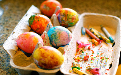 Zsírkrétával is csodaszép húsvéti tojásokat készíthetünk, persze ahhoz, hogy fogjon is a krétánk a tojáshéjon, először meg kel főznünk a színezni kívánt tojásokat keményre, majd betenni őket 350 fokos sütőbe. Miután átforrósodtak, húzzuk ki őket a sütőből, és nyomjuk rájuk a krétákat, vagy szórjuk meg zsírkréta-forgáccsal, amit előzetesen kinyertünk a ceruzahegyezőből. A hő hatására a zsírkréta megolvad a tojás felületén, és csodaszép lenyomatokat képez rajta. A projektet inkább idősebb gyerekeknek ajánljuk.