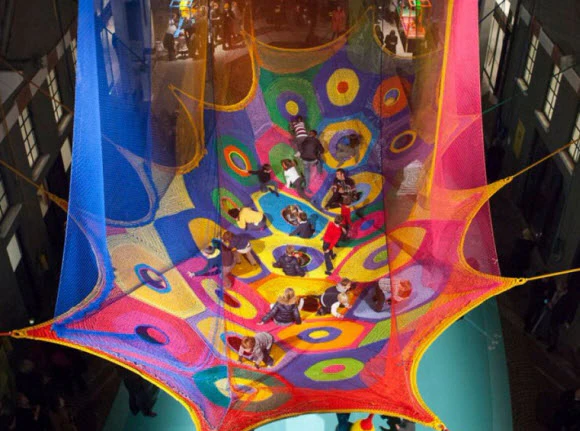 Túl sok játékra lehetőséget nem ad, de maga a kivitelezése nagyon kreatív a japán művész, Toshiko Horiuchi MacAdam által tervezett szivárványszínű játékhálónak, amelyet 3 évig szőttek.