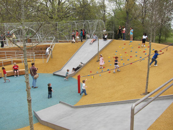Az elismert amerikai építész, David Rockwell által tervezett New Yorki játszótér célja, hogy a gyerekek kicsit másképp játsszanak, mint a hagyományos játszótereken A gyerekek maguk mozgathatják és kapcsolhatják össze a kék habkartonból készült elemeket új játékokká, és interaktív játéktereket alkothatnak homokból, vízből, és mindenféle eszközből, pl. szövetekből. Az alkotók szerint azok a gyerekek, akik rendszeresen játszanak változatos és kihívást jelentő játékokkal, sokkal jobban helytállnak az iskolában is.