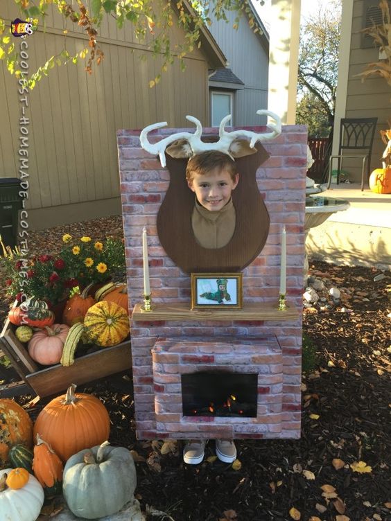 #5. Egyik személyes kedvencem, és csak első ránézésre igényel sok munkát: hiszen nem kell más hozzá, csak egy nagy kartondoboz, egy tégla mintájú csomagolópapír vagy tapéta, két gyertyatartó, képkeret, szarvas álarc vagy agancs. Nos igen, kérdéses, hogy a tűzhelyet hogyan alkották meg, de a tavalyi jelmezes játékukból kiindulva szerintem vagytok annyira fantáziadúsak, hogy nektek nem okozhat ez gondot!