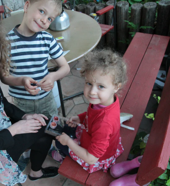 Egy kis lapogatás, nyomkodás után finoman húzzuk le a fóliát a bőrről: egy ragacsos réteg marad fent, erre kell majd szórni a csillámokat. Mivel én elég béna voltam, Lili bátyja, Brúnó segített a lehúzásban: