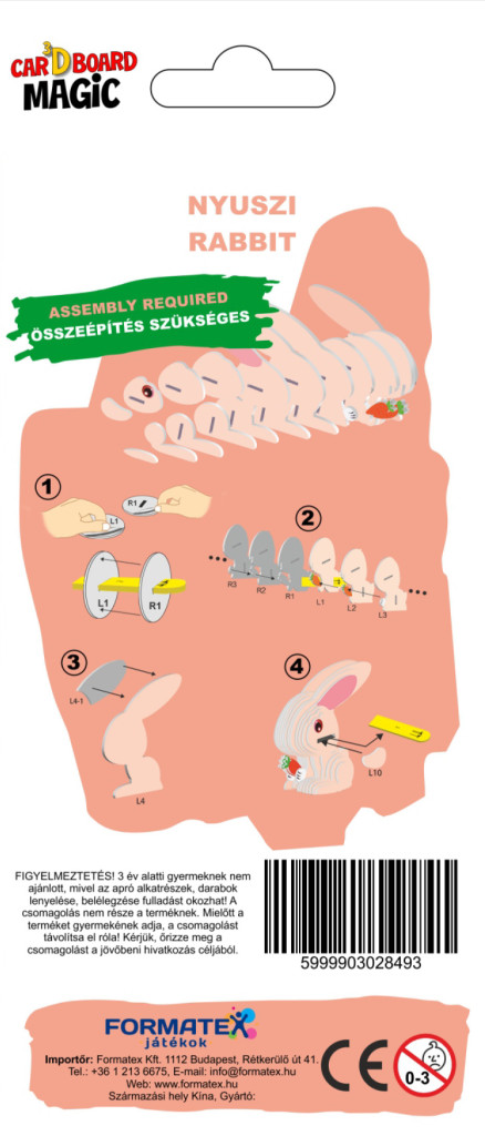 Ez a 3D-s papírszobrászat készlettel a gyerekek saját kezűleg alkothatnak egy hosszú füles, sárgarépát majszoló kis barátot. A játék fejleszti a térbeli gondolkodást és a finommotorikus készségeket. Egyedülálló szórakozás és értékes ajándék minden kis alkotónak!