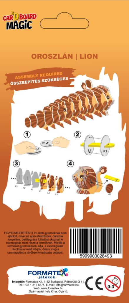 Lepd meg gyermeked és fejleszd a kreativitását ezzel a lenyűgöző 3D papírszobrászattal! Az oroszlán minden részlete élethűen kidolgozott, a sörényétől a farkáig. Könnyen összeállítható, garantált szórakozást nyújt! A 3D-s papírmódszerrel könnyedén összeállítható, és fejleszti a térbeli gondolkodást és a finommotorikus készségeket.