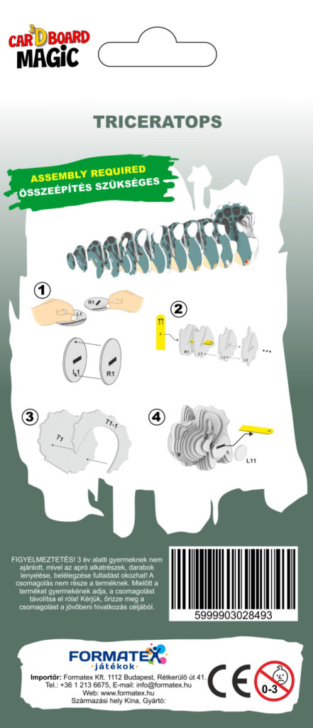 A kicsik imádni fogják ezt a kreatív játékot, amely során egy igazi paleontológus bőrébe bújhatnak. A Triceratops 3D puzzle összeállítása nemcsak szórakoztató, de fejleszti a koncentrációs képességet és a türelmet is.