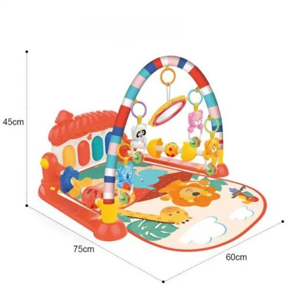 A játszószőnyeg bébitornázóval és zongorával tökéletes játék egy gyermek számára, az élete első pillanataitól kezdve. Ahogy növekszik a baba, a játszószőnyeggel is többféleképpen játszhat. Először a hátán fekve, a felfüggesztett játékokkal melyek különböző élénk színű állatfigurás csörgők, valamint középen egy tükör is van, melyben láthatja magát a pici ismerkedve a saját arcképével. A kis lábaival pedig az ő pici lábainak megfelelő méretű gombok segítségével tudja megszólaltatni a zongorát ahogy ráteszi a lábait. Később hasonfekve is tud játszani ezzel a zongorával és amikor már ülni is tud akkor még érdekesebb lehet számára a játszószőnyeg, az oldalt elhelyezkedő különböző forgatható csörgők miatt.