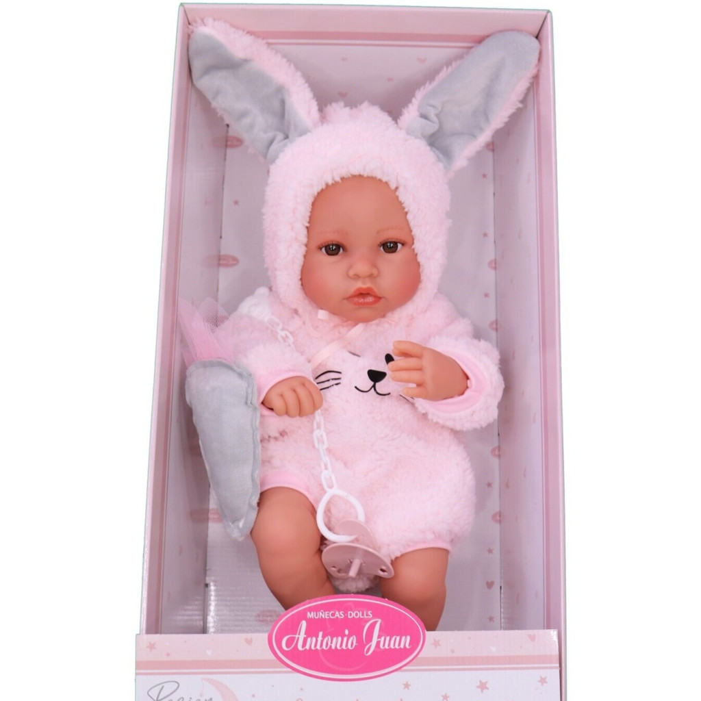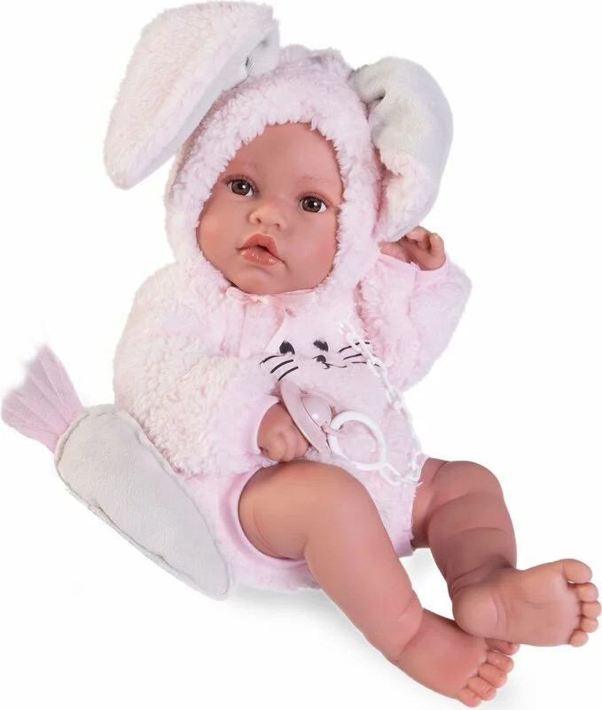 Antonio Juan: Újszülött Erika baba nyuszi jelmezben 42 cm-es