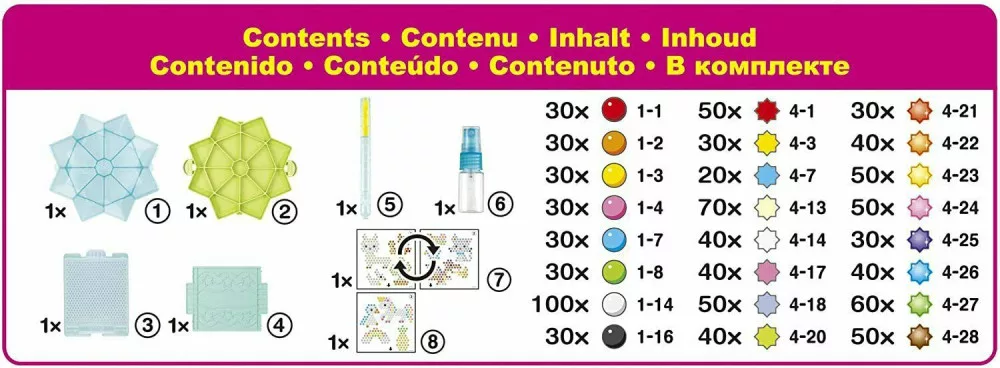 Az új Aquabeads most csillag formájú gyöngyökkel kápráztatja el a lányokat 1000 darab gyönggyel - 24 különböző színben és sablonnal. Csillogjanak a figurák új formában, a képzeletnek nincs határa. Alkoss a sablonok vagy saját fantáziád alapján térbeli figurákat. Rendezd el a tálcán a gyöngy toll segítségével a színes gyöngyöket, permetezz rájuk egy kis vizet, várd meg míg megszárad és már kész is a figura!