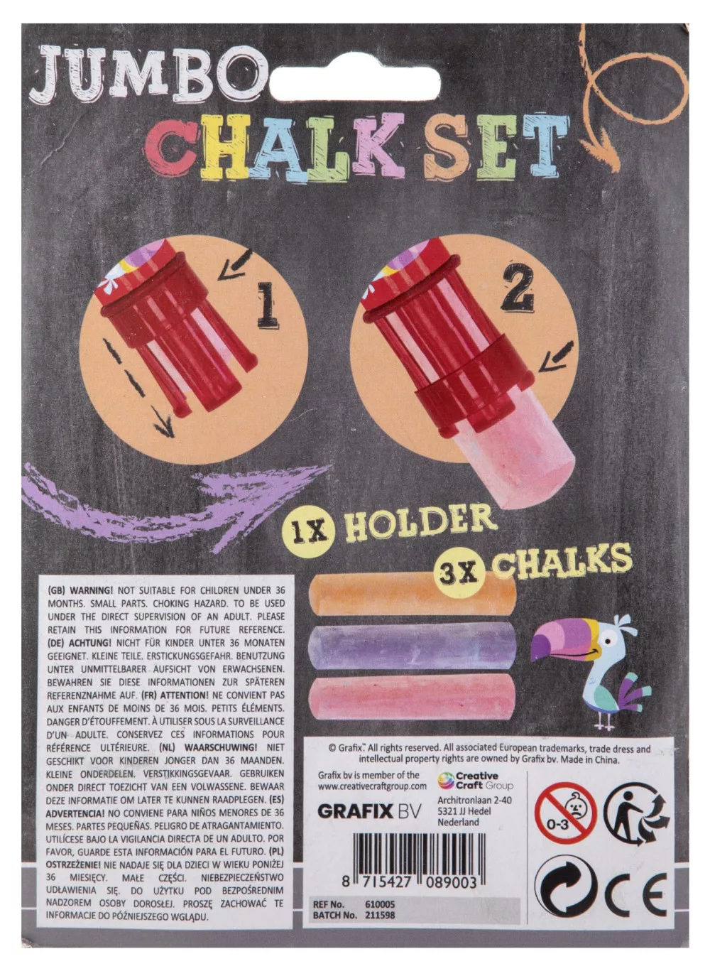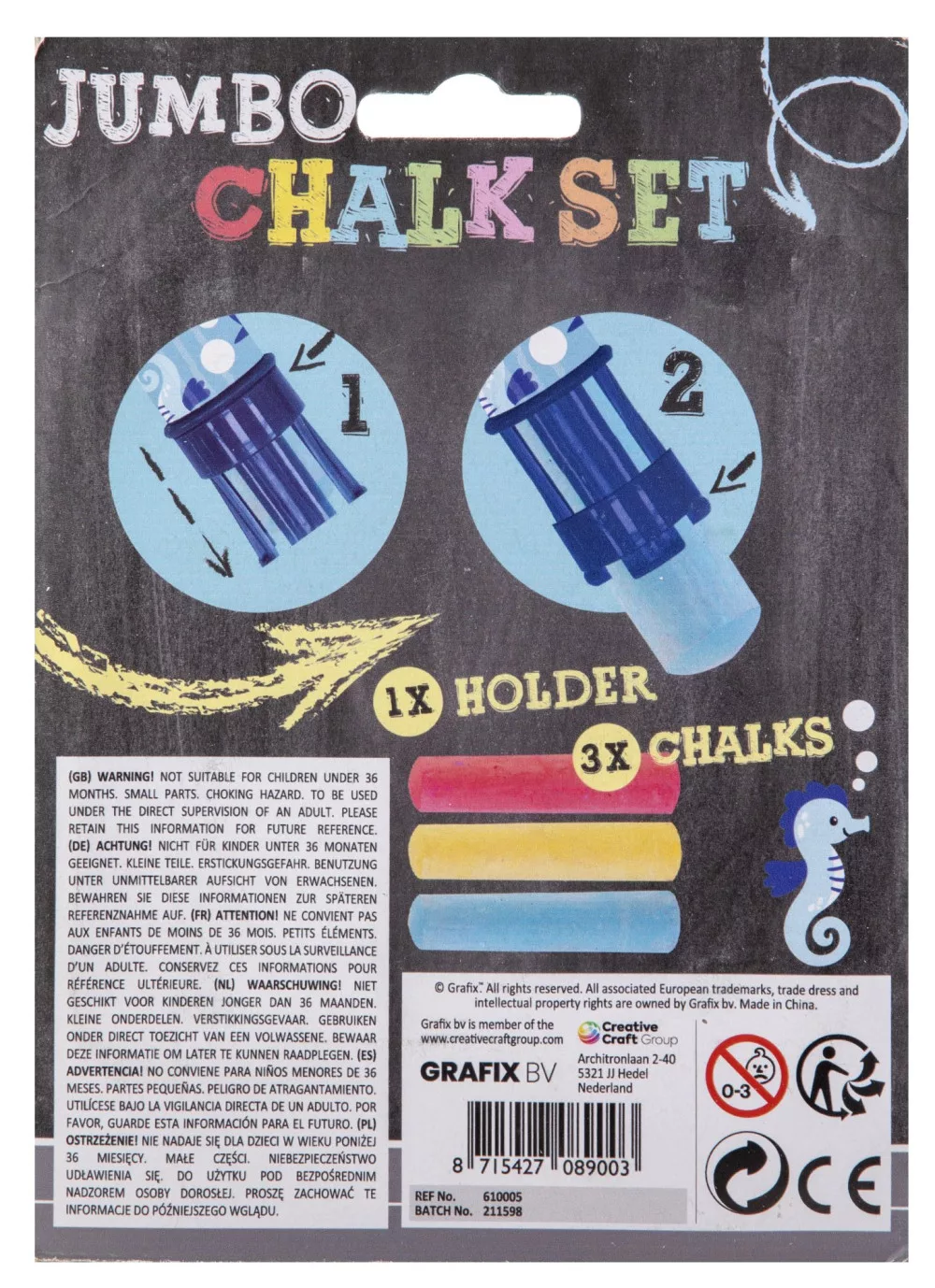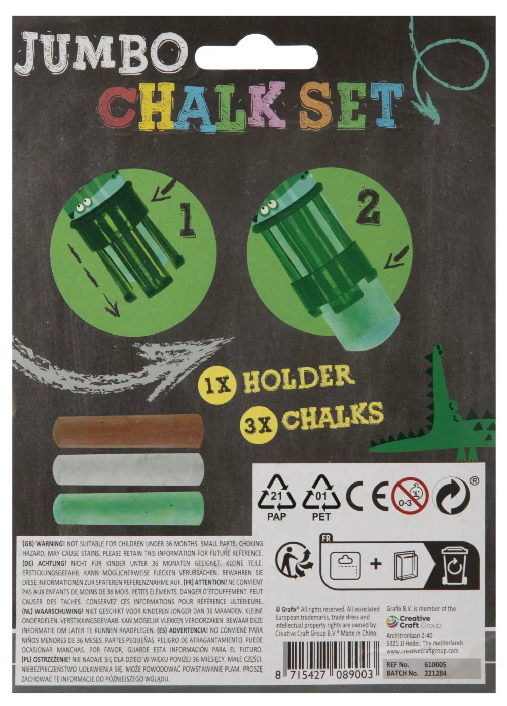 • Kényelmes fogású krétatartó a kisebb kezeknek is