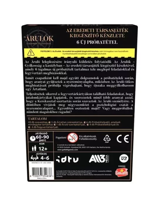 A játék kiegészítő, az eredeti Árulók társasjáték nélkül nem használható!