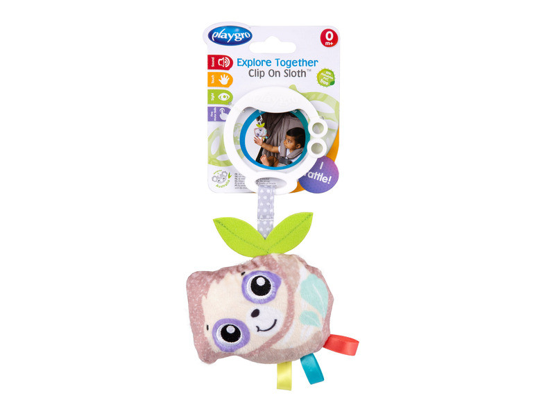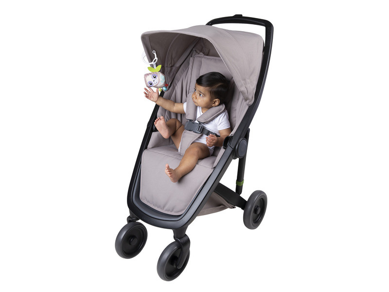 Csipesznek köszönhetően könnyen rögzíthető babakocsihoz vagy autósüléshez, akár kiságyra is akasztható. A plüssfigura azonnal felkelti a pici érdeklődését, ezáltal mozgásra is ingerli, hiszen rögtön meg akarja fogni a kis plüssállatot. Az állat kellemes tapintású, élénk színei lekötik a bébi figyelmét.