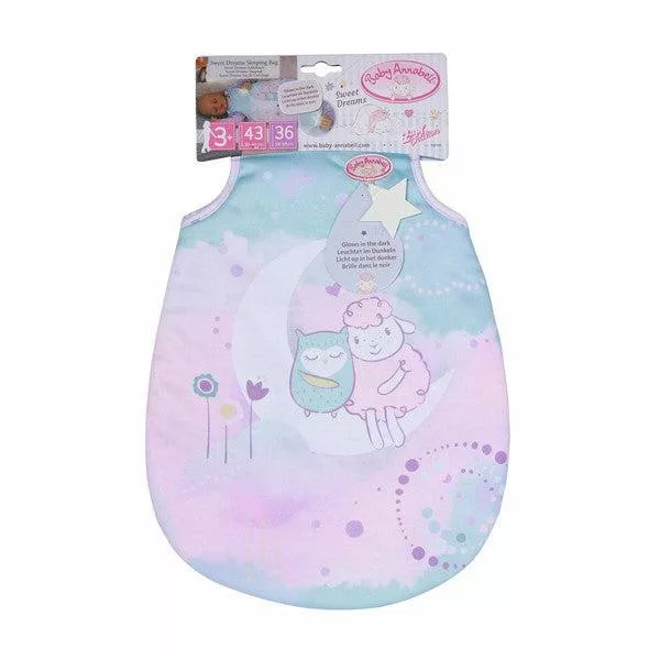 Ebben a hálózsákban Annabell baba úgy szunyókál, mint egy angyal. Hátul aranyos szárnyak vannak rávarrva. A hálózsákon lévő pántok könnyen nyithatók és zárhatók tépőzárral, így a Baby Annabell könnyedén bebújuk puha hálózsákjába.