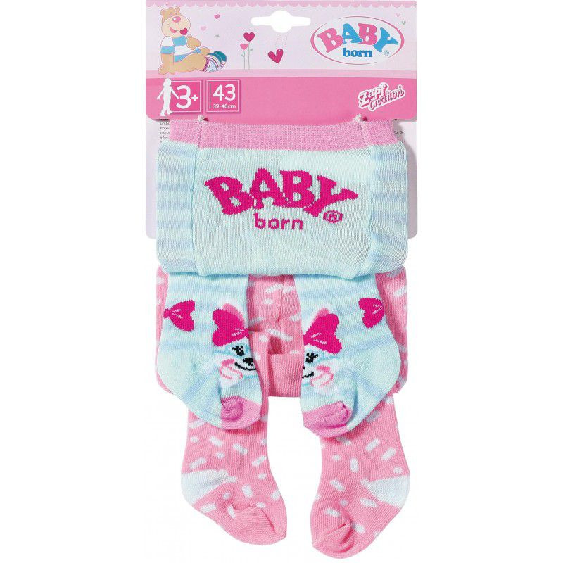 A Baby Born harisnya praktikus dupla kiszerelésben, kellemes anyagból készült és kellő kényelmet biztosít a szabad mozgáshoz szórakozás közben.