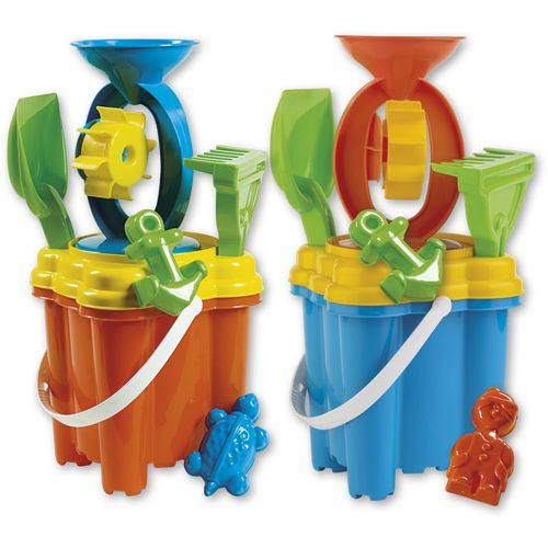 Ezzel a homokozó szettel mókás tengeri formákat és hatalmas homokvárat építhetsz. Használd a vödröt és a formákat. A malom remek szórakozást nyújt majd a kicsik számára.