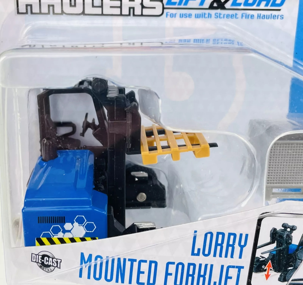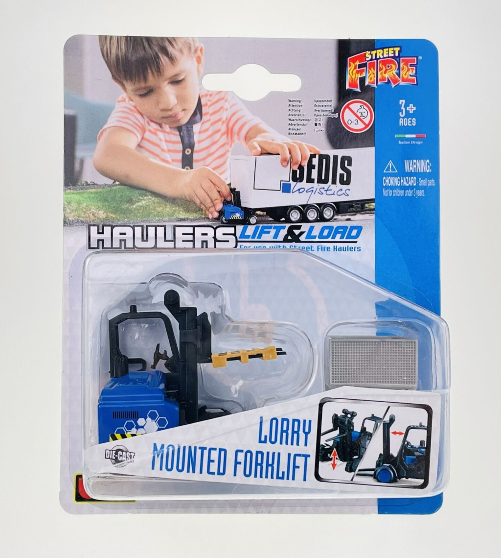 A targonca együtt használható más 1:43 méretarányú autókkal, játékkészletekkel is.