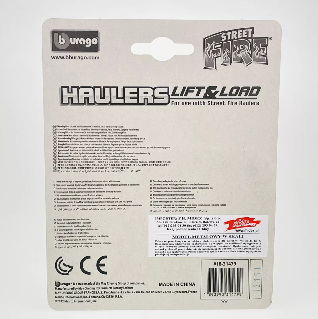 Az 1:43 méretarányú Bburago targonca egy műanyagból készült, gázos meghajtású emelőgép, amit főleg kültéri raktárakban lehet használni. A targonca villája emelhető, a csomagban lévő dobozt, vagy egyéb terheket is magasra tudsz vele emelni.