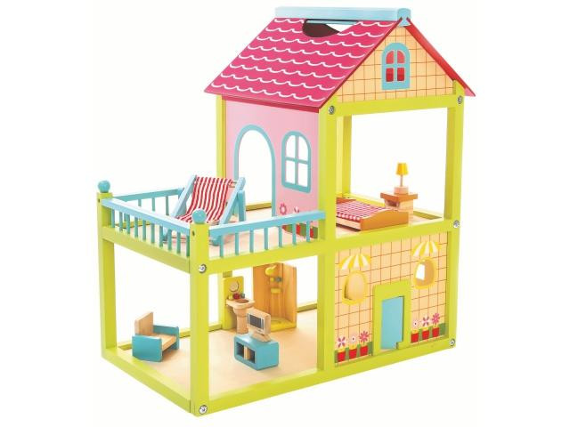 Isten hozott a Villa Anna luxus fa babaházban, ami biztosan elkápráztat majd. Ez a minőségi fából készült, csodálatosan festett babaház remek játékteret nyújt a gyerekeknek arra, hogy babáikkal játszanak. A ház 50 x 55cm-es, így igazán impozáns látvány összeállítva. A házban természetesen bútorok is helyet kaptak, hogy a gyerekek be tudják rendezni a szobákat. A szettben megtalálható a hálóágy éjjeliszekrénnyel, a TV állvánnyal és fotellel, valamint egy komplett fürdőszoba és még számos extra.