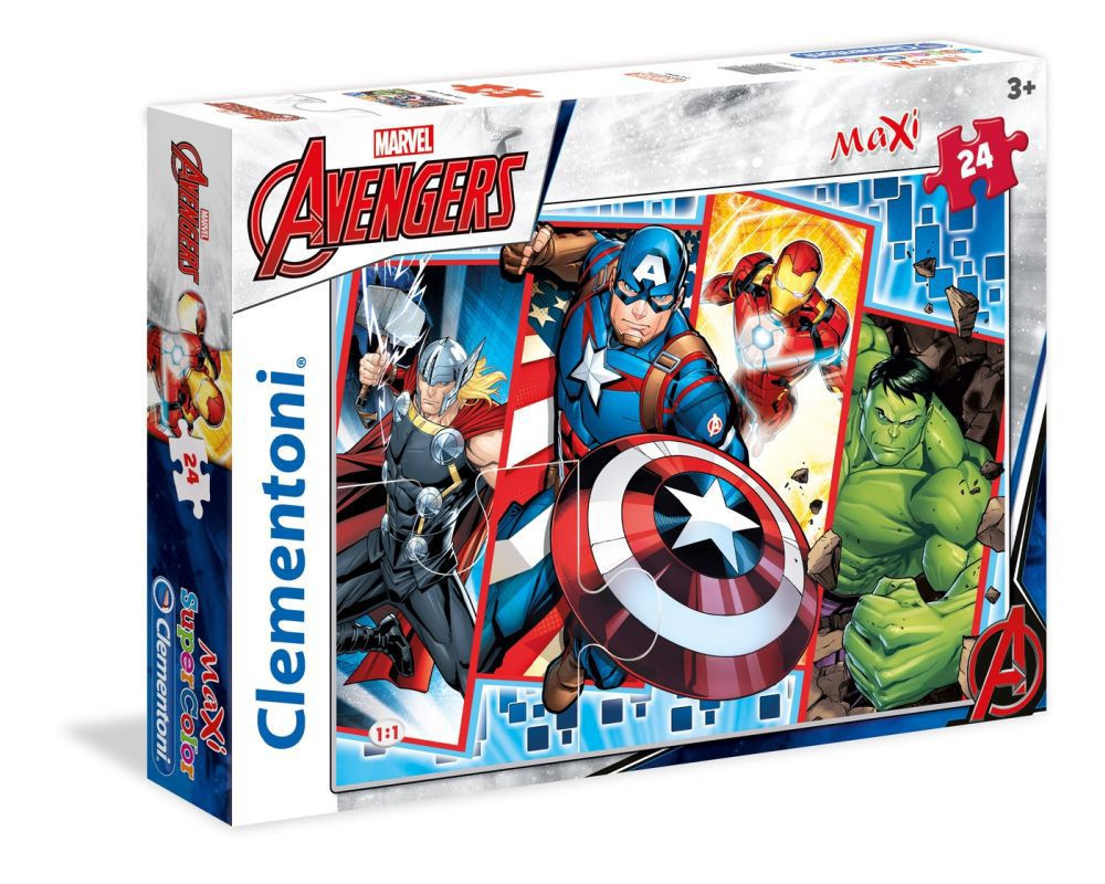 A Maxi puzzle méretének köszönhetően segíti a legkissebbekkel megszerettetni a kirakózást. Ezen a kirakón a Bosszúállókból ismert szuperhősök elevenednek meg.