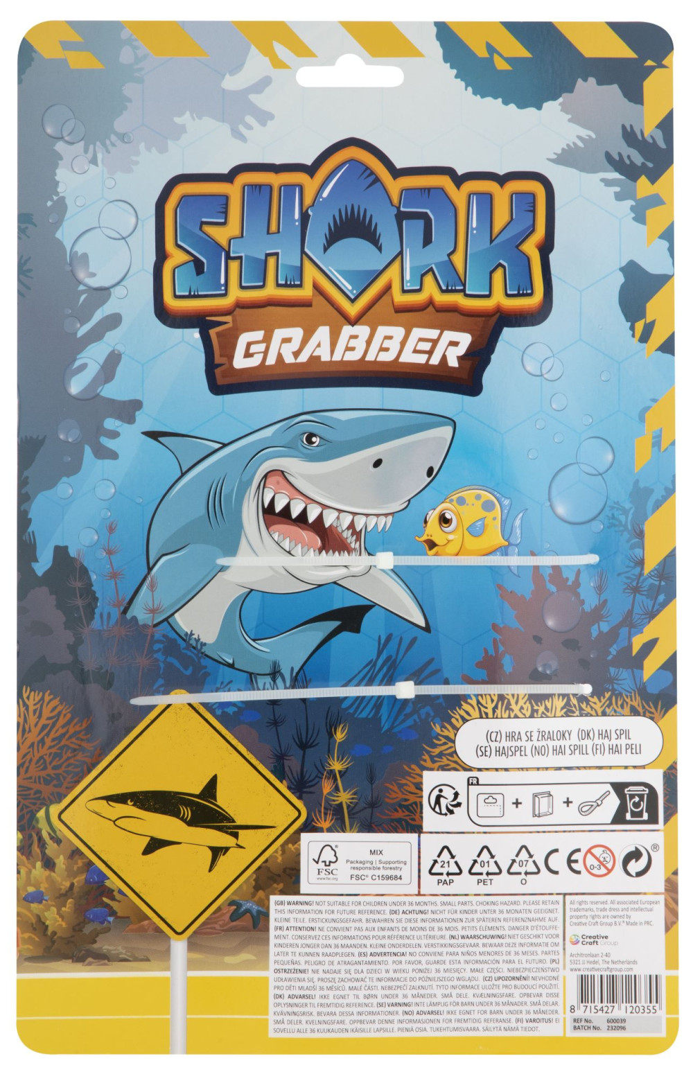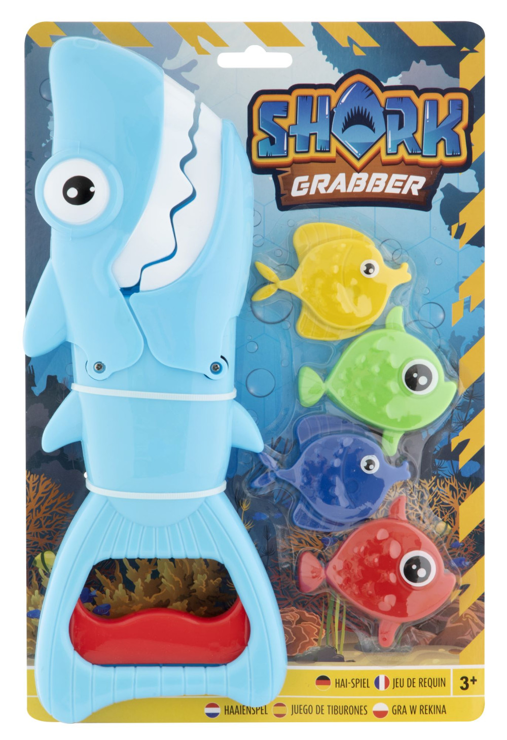 A 30 cm-es cápa nagy fogóval van felszerelve, hogy a kis hősök 4 színes halacskát (kb. 7 cm) fogjanak ki. A játék remekül fejleszti a motoros készségeket és a koordinációt, miközben a móka sem marad el!