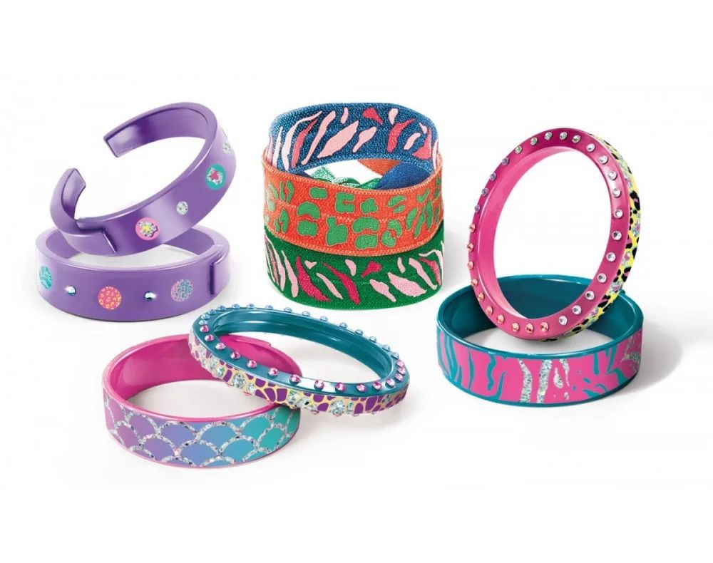 Ezzel a csodálatos Crazy Chic készlettel igazán egyedi ékszereket készíthetsz! Dekoráld a dobozban található műanyag karkötőt kedvedre a matricák és a csillámporok segítségével, teljesen személyre szabhatók. Vond be a játékba barátnőidet vagy családtagjaid, testvéredet.
