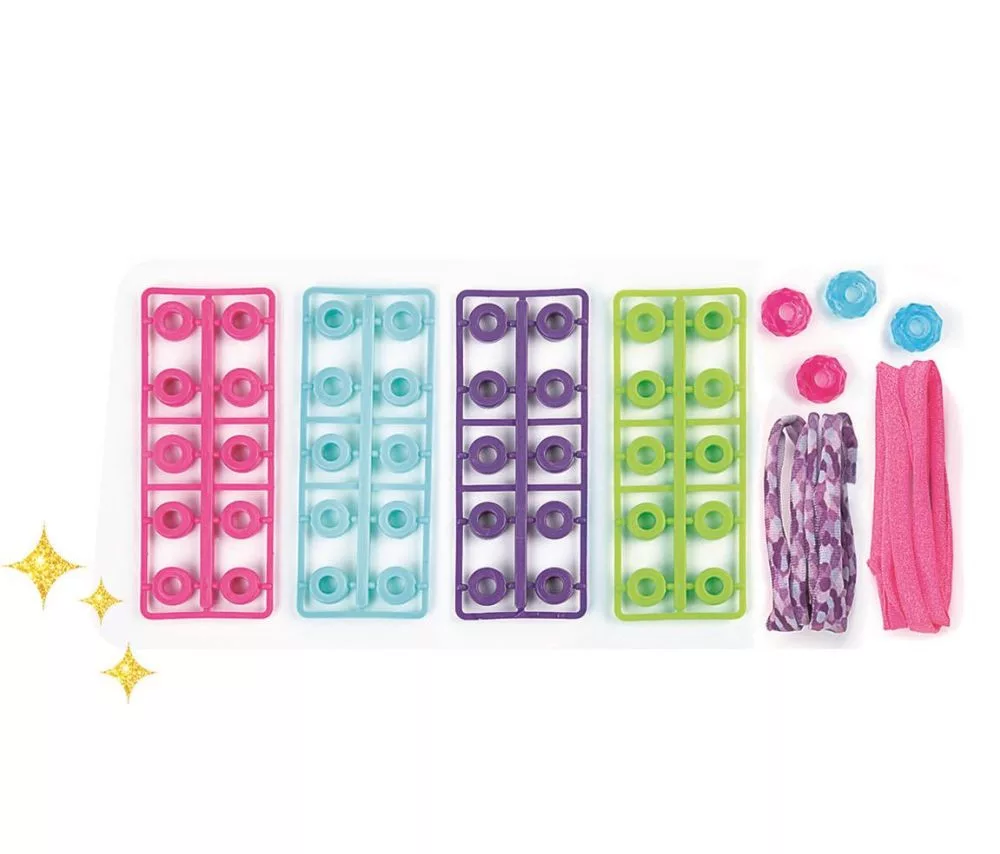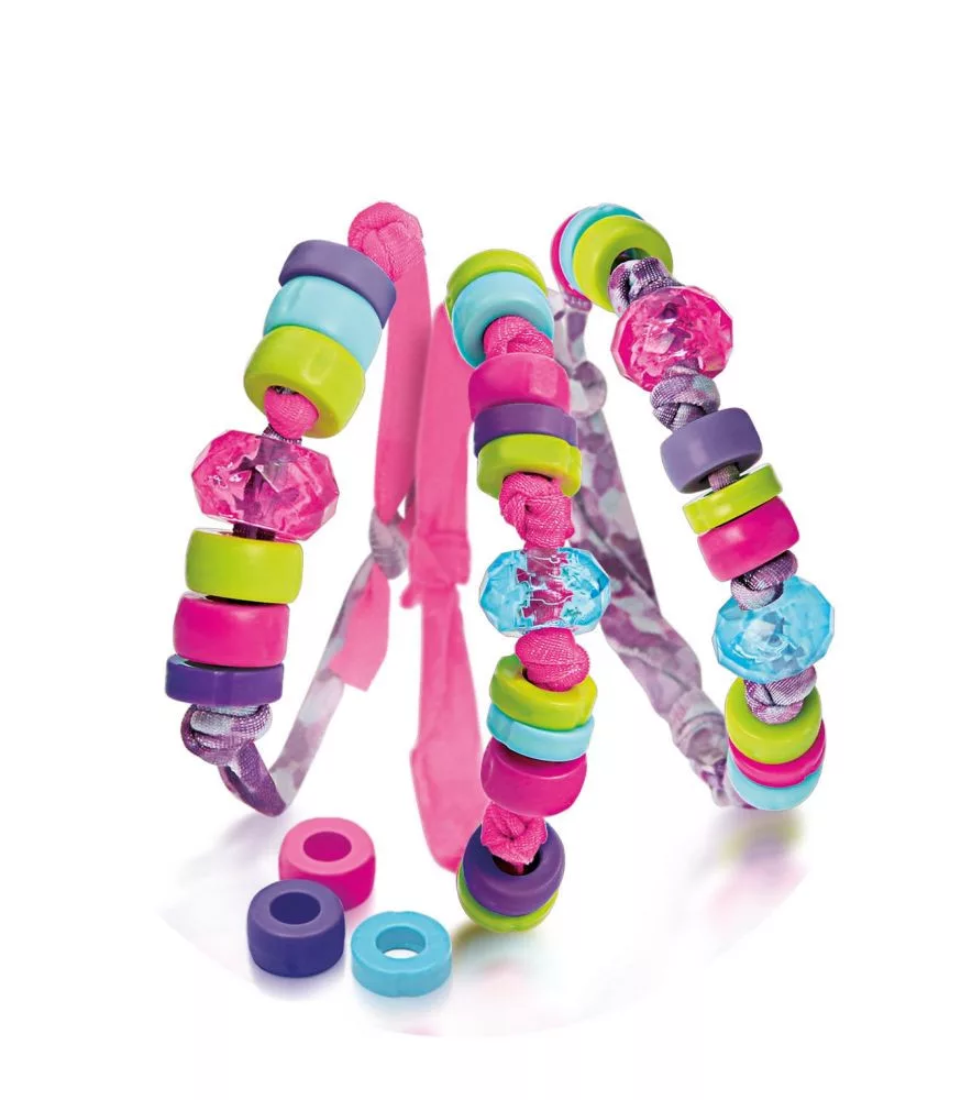 A színes gyöngyök világa fantasztikus karkötők készítésére invitálnak, amelyek egyedi megjelenésűek és mindig divatosak! A játék rengeteg színes műanyag gyűrűt és csillogó lycra szalagot tartalmaz, így többszínű karkötőt készíthet! Serkenti a kislányok kézügyességét és fantáziáját.
