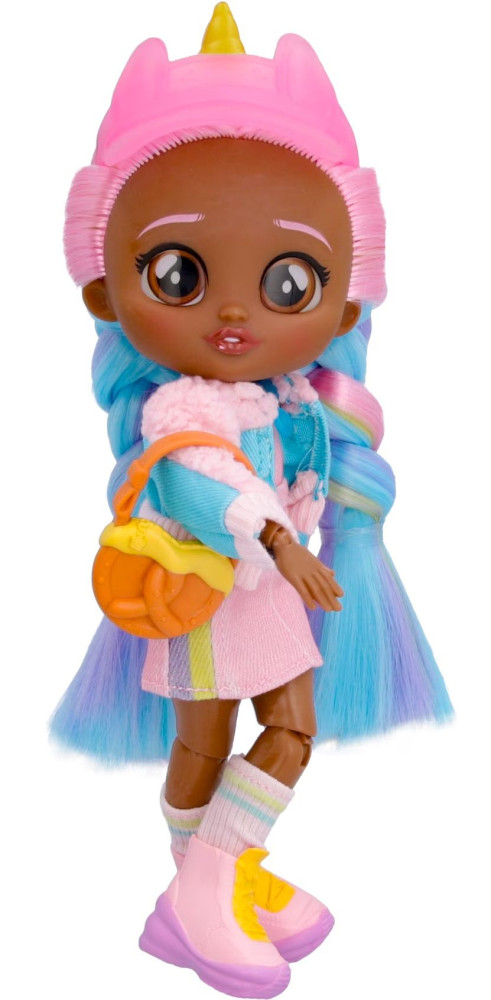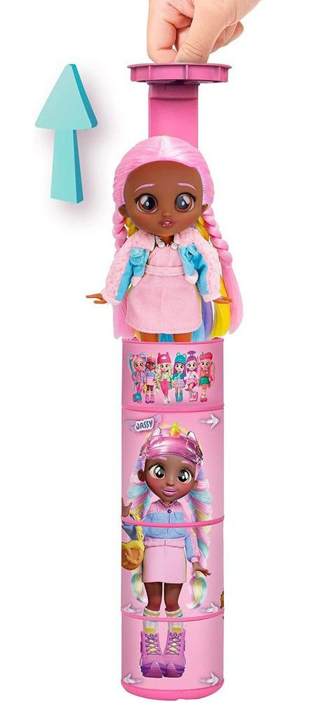 Jassy igazán stílusos szivárvány színű fonotthajjal, és 6 hajlítható ízülettel rendelkezik. Divatos egyberészes ruhát visel, kis övvel és hozzá illő dzsekivel! Sőt! Még a szetthez passzoló retikülje is van. Nézd meg őt a henger alakú kijelzőn, amely forog, hogy megmutassa a különböző pózait. Csomagold ki és fedezd fel szekrényét a meglepetésekkel: 2 ruhadarab, egy táska, egy hajkiegészítő, egy pár cipő, egy pár zokni, egy napszemüveg és egy nyaklánc.