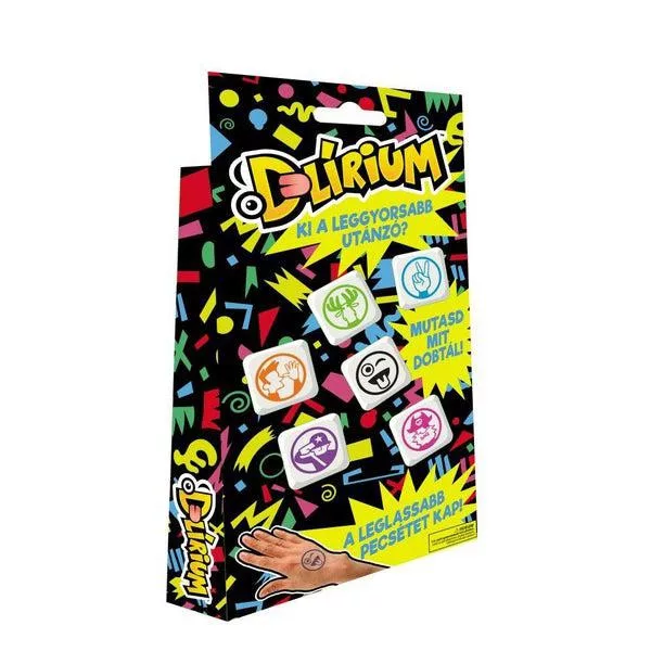 A Delírium egy gyors reakción és alapos megfigyelésen alapuló játék. Dobj a kockákkal és próbáld meg minél hamarabb felismerni a rajzokat. Ha a kidobott kockák közül kettőn vagy többen is ugyanaz a rajz szerepel képpel fölfelé, minél gyorsabban mutogasd el az adott gesztust. A kiszámíthatatlan kocka célja, hogy megtévesszen, úgyhogy jól figyelj rá!