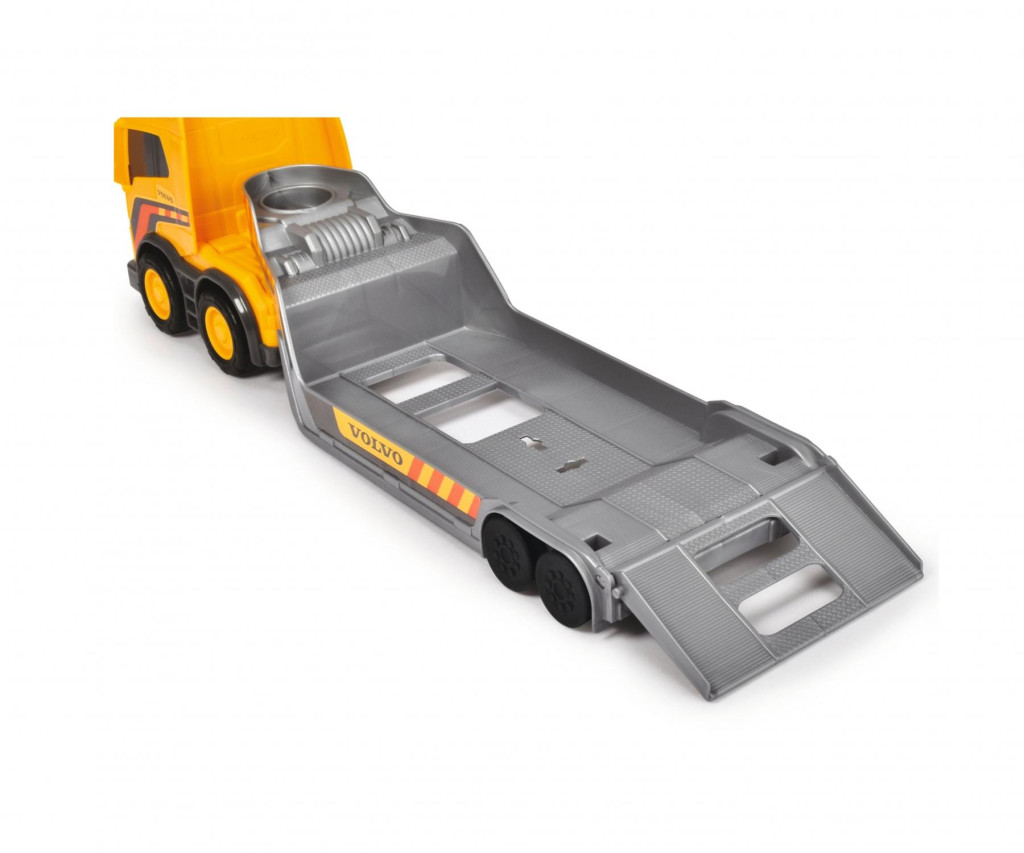 • Teljes Építőipari Készlet: A masszív Volvo teherautó egy utánfutót vontat, amely a mozgatható, 9 cm-es Volvo kerekes rakodót szállítja! A kerekes rakodó forgó kerekekkel és egy gombnyomással mozgatható lapáttal rendelkezik – tökéletes az árokásáshoz és a rakomány mozgatásához.