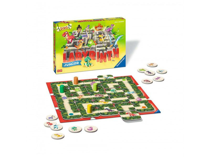A Ravensburger Junior Dino Labyrinth egy családi társasjáték, amelyet egyszerű szabályai és játék közbeni nagyszerű dinamikája miatt imádni fogsz. A dinoszauruszok elvesztek a labirintusban! Segítesz nekik? A Ravensburger Labirintus Dino társasjáték egy izgalmas kalandra invitálja a játékosokat, ahol a cél az, hogy minél több kincset és dínó csontot szerezzenek meg a labirintusban. A játékmenet során a játékosok egyszerre helyezik el a játéktáblára a labirintus egy-egy részét, majd az egyes játékosok a saját kincskeresőjüket mozgatják az újonnan kialakított labirintuson keresztül, és igyekeznek összegyűjteni minél több értékes tárgyat. Azonban az útjukban álló dínók és akadályok megnehezítik a dolgukat, így a játékosoknak taktikusan kell játszaniuk és ügyesen használniuk a különböző kártyákat, hogy elérjék a céljukat.