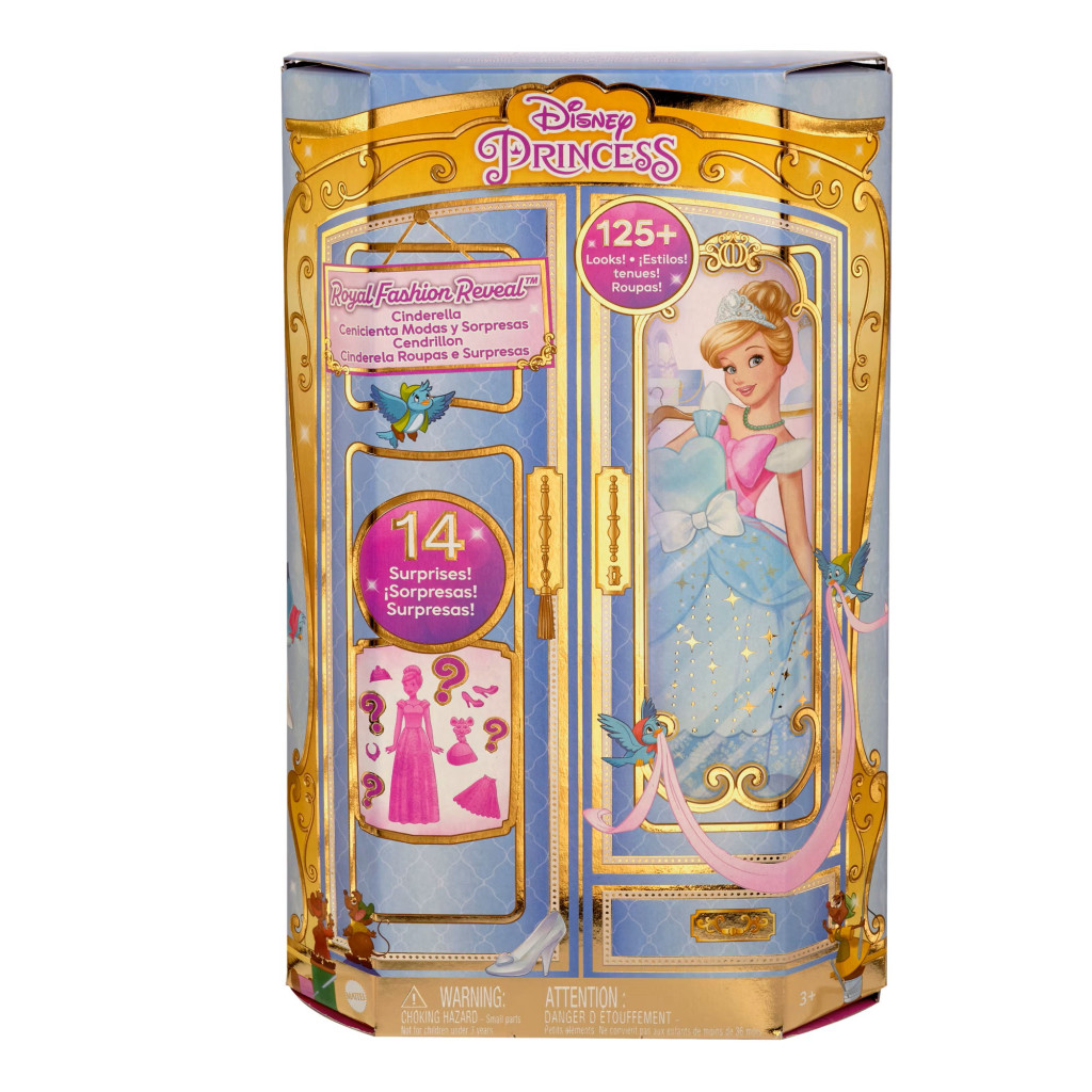 A Royal Fashion Reveal Hamupipőke baba a hozzá illő ruhakészlettel a klasszikus Disney film animált karaktere ihlette, és a rajongók számára végtelen kicsomagolási szórakozást kínál.