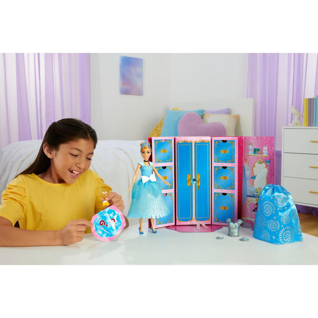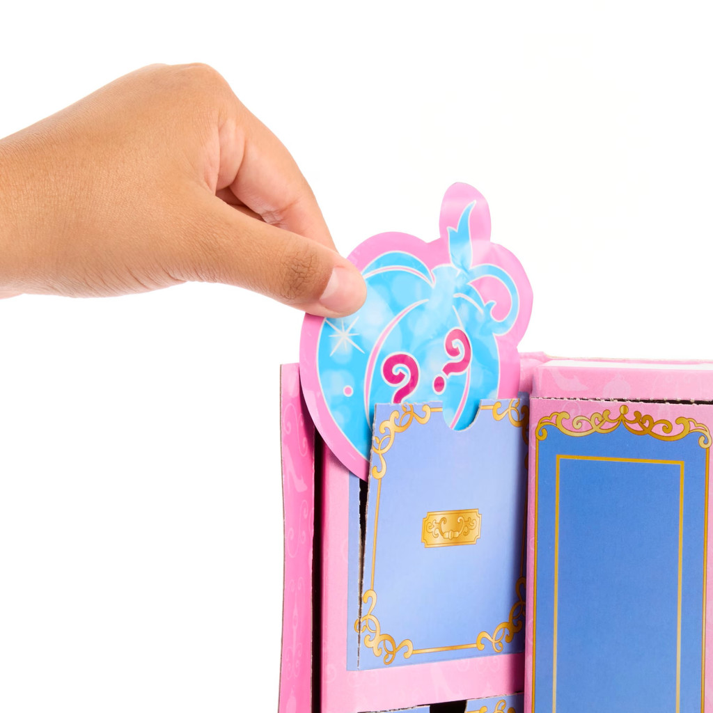 A gyerekek kinyitják a dobozt, hogy felfedezzék a 12 divatos elemet és kiegészítőt Hamupipőke jellegzetes színeiben, köztük 2 szövetszoknyát, 2 felsőt, 2 pár cipőt és még sok mást.