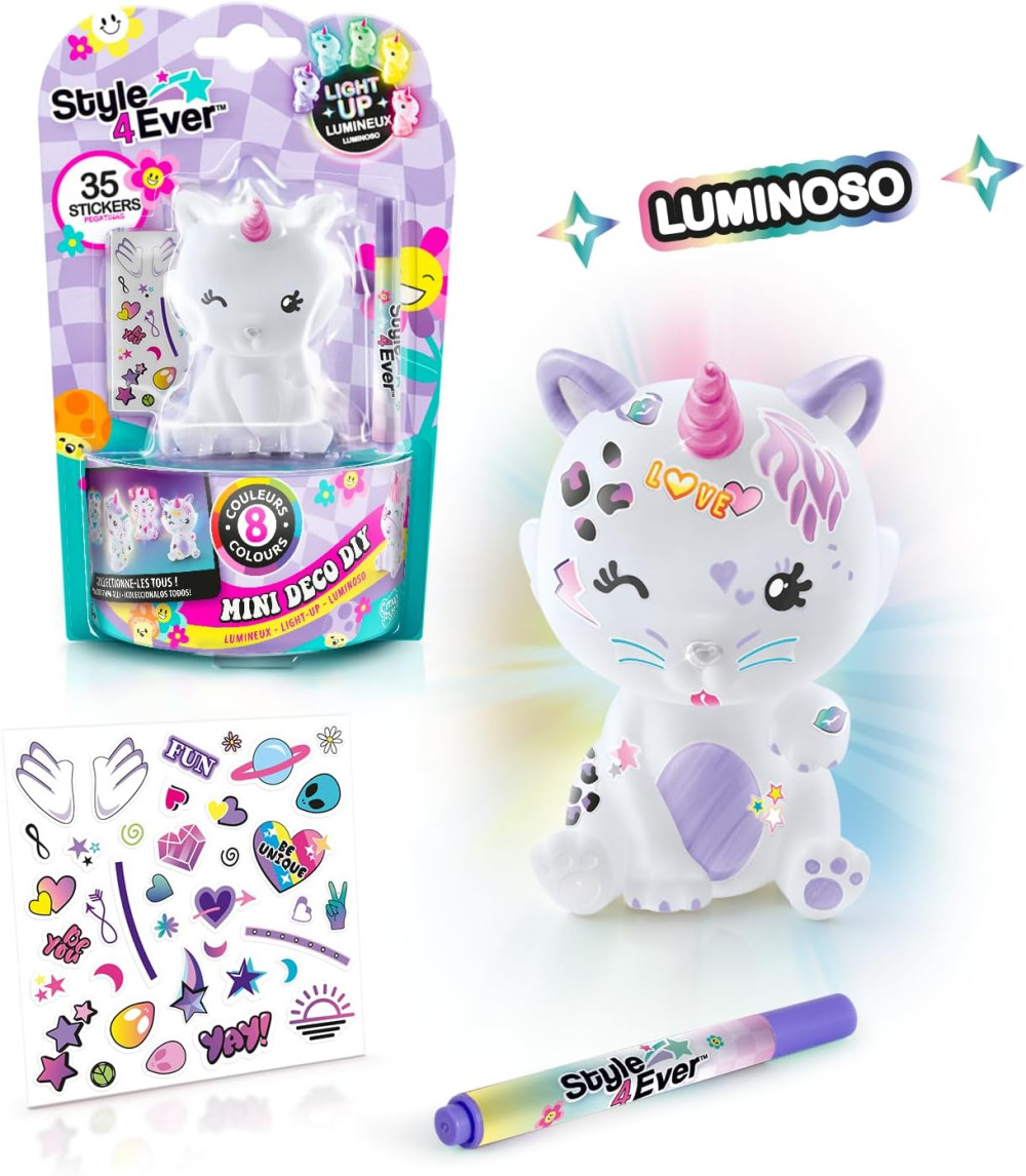 Díszítsd fel ezt a cuki sötétben világító figurát olyan egyedi stílusban, ami a legjobban illik hozzád! A készletben ehhez 35 izgalmas matricát találsz, plusz egy filctollat is, amivel még színesebbé és egyedibbé varázsolhatod a kis pajtásod. Ha a fények kialszanak, egyszarvú állatkád varázslatosan ragyog majd a sötétben!