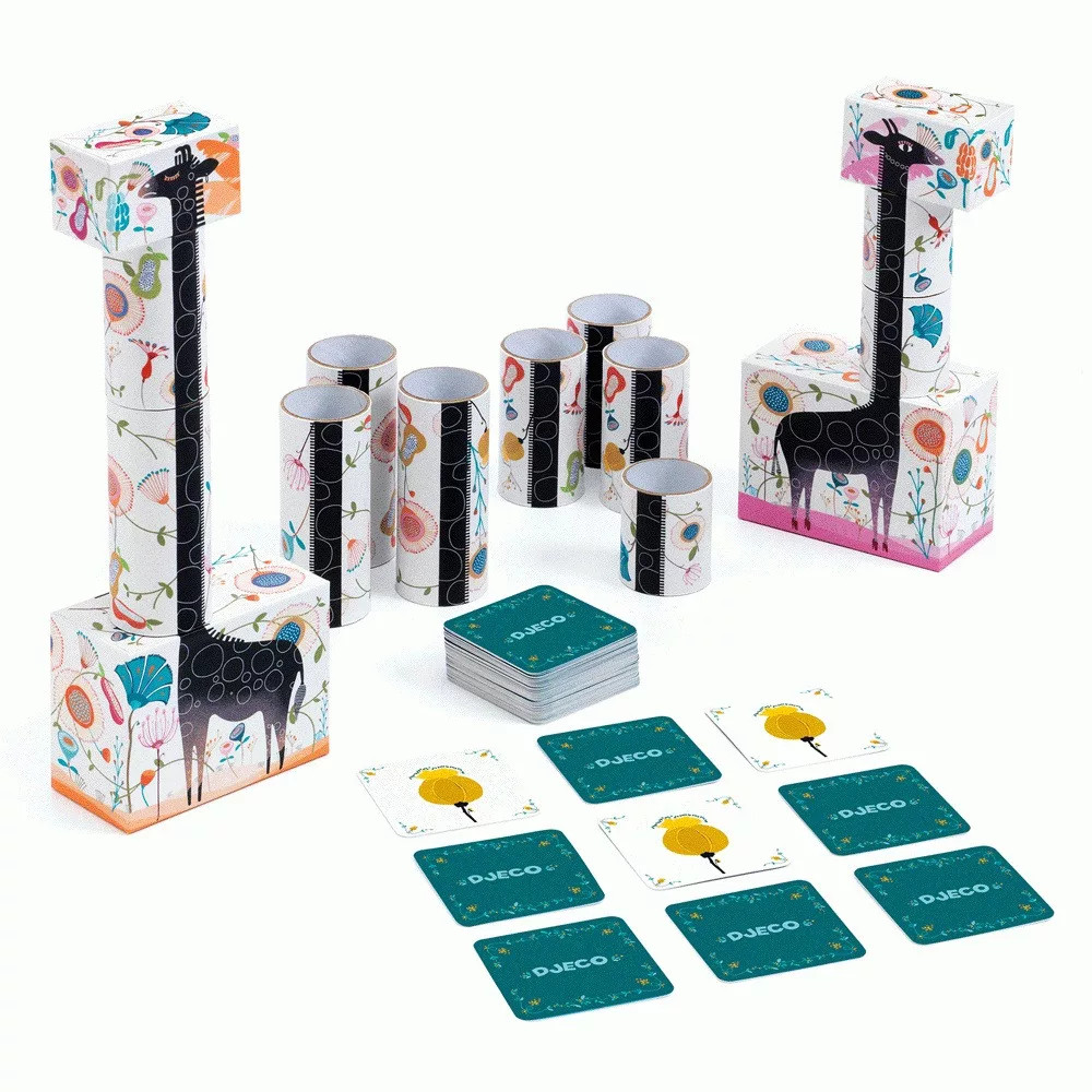 Fedezd fel a Zirafa - Memória, ügyességi társasjátékot a Djeco-tól, amely garantáltan leköti a figyelmedet és próbára teszi a memóriád, valamint az ügyességed!