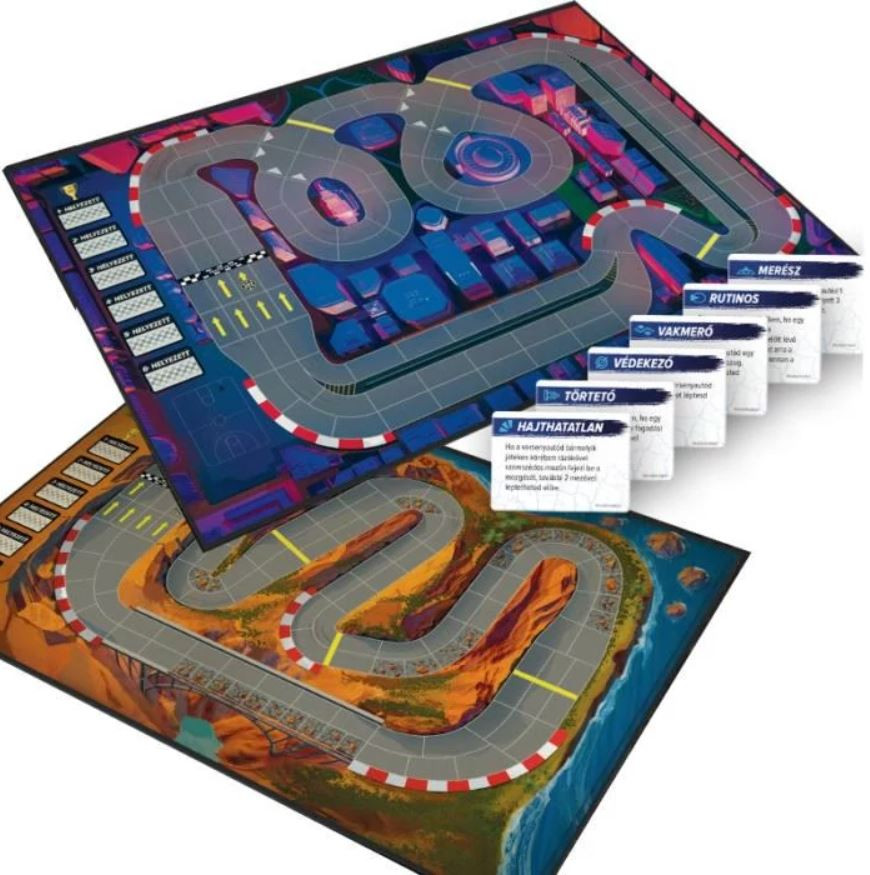 Fokozd a verseny izgalmát! Az új kétoldalas játéktáblával két új pályán teheted próbára vezetési képességeidet, az új vezetési stílus kártyáknak köszönhetően pedig még változatosabbá tehető a futam. A városi futamban izgalmas hurkok és egérutak várnak rád a város szívében, a hazárdőr kanyonban pedig lehullott szikláktól töredezett úton kell megküzdened a kanyarokkal.
