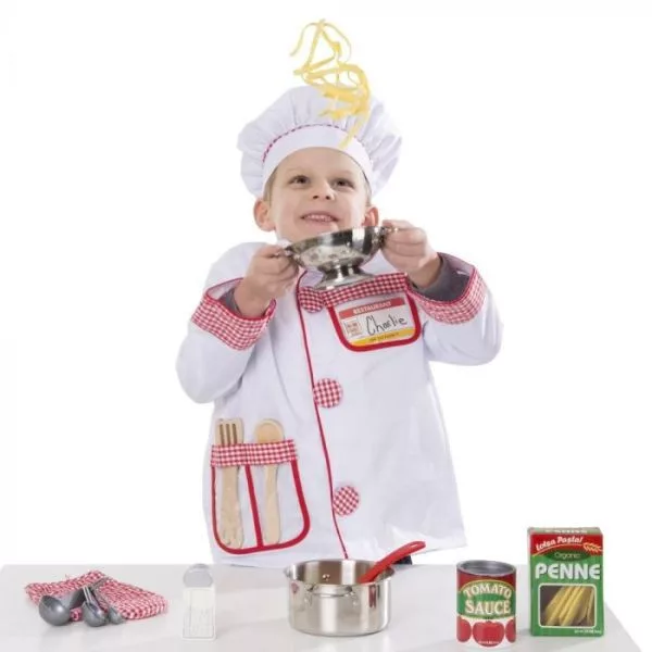 A valósághű (12-13 cm átmérőjű) edények, a szűrő és a három serpenyő cserélhető tetővel szinte minden éttermi, konyhai játékhoz alkalmas.