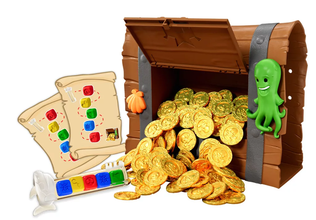 A játékosok versenyeznek, hogy elsőként nyissák ki a kincsesládát és megszerezzenek három aranyérmét. Gyűjtsd össze a megfelelő kockákat, helyezd be a kulcsot és nyisd ki a ládát! Az első, aki három aranyérmét szerez, az győz!