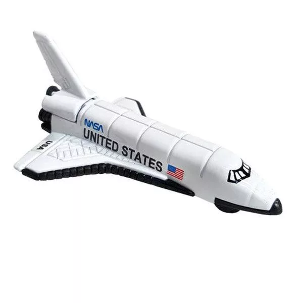 Irány a világűr! Ezzel az űrsiklóval képzeletben bárhova eljuthatsz. Húzd hátra a fehér NASA felirattal ellátott űrhajót és figyeld ahogy végig gurul a kifutópályán.