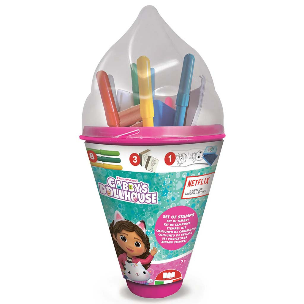 Ez a praktikus és kreatív készlet minden kis rajongójának kötelező darab. A készletben található 8 színes lemosható filc, 5 db ergonomikus fa nyomda és a lemosható tinta segítségével a gyerekek szabadon alkothatnak és színezhetnek. A Gabi babaháza színező füzettel pedig még több ötletet meríthetnek. A fagyi alakú dobozban minden elfér, így a szettet bárhová magatokkal vihetik.