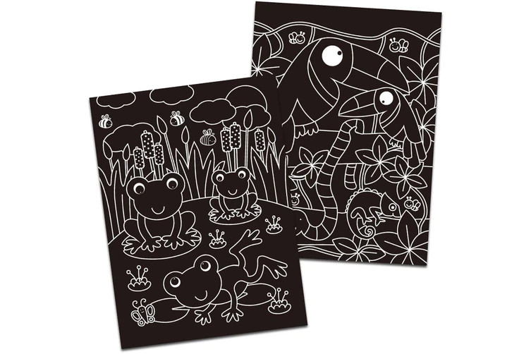 A Galt kaparós képeskönyvvel a kicsik órákig elszórakozhatnak, miközben állatokat és más izgalmas mintákat fedeznek fel. A Galt Scratch Picture Book egy varázslatos utazás a kreativitás világába. 10 lenyűgöző kép rejtőzik a fekete felület alatt, amelyeket egy fa pálcával egyszerűen lekaparhatsz. Az oroszlánok, békák és delfinek mellett még sok más állat vár rád!