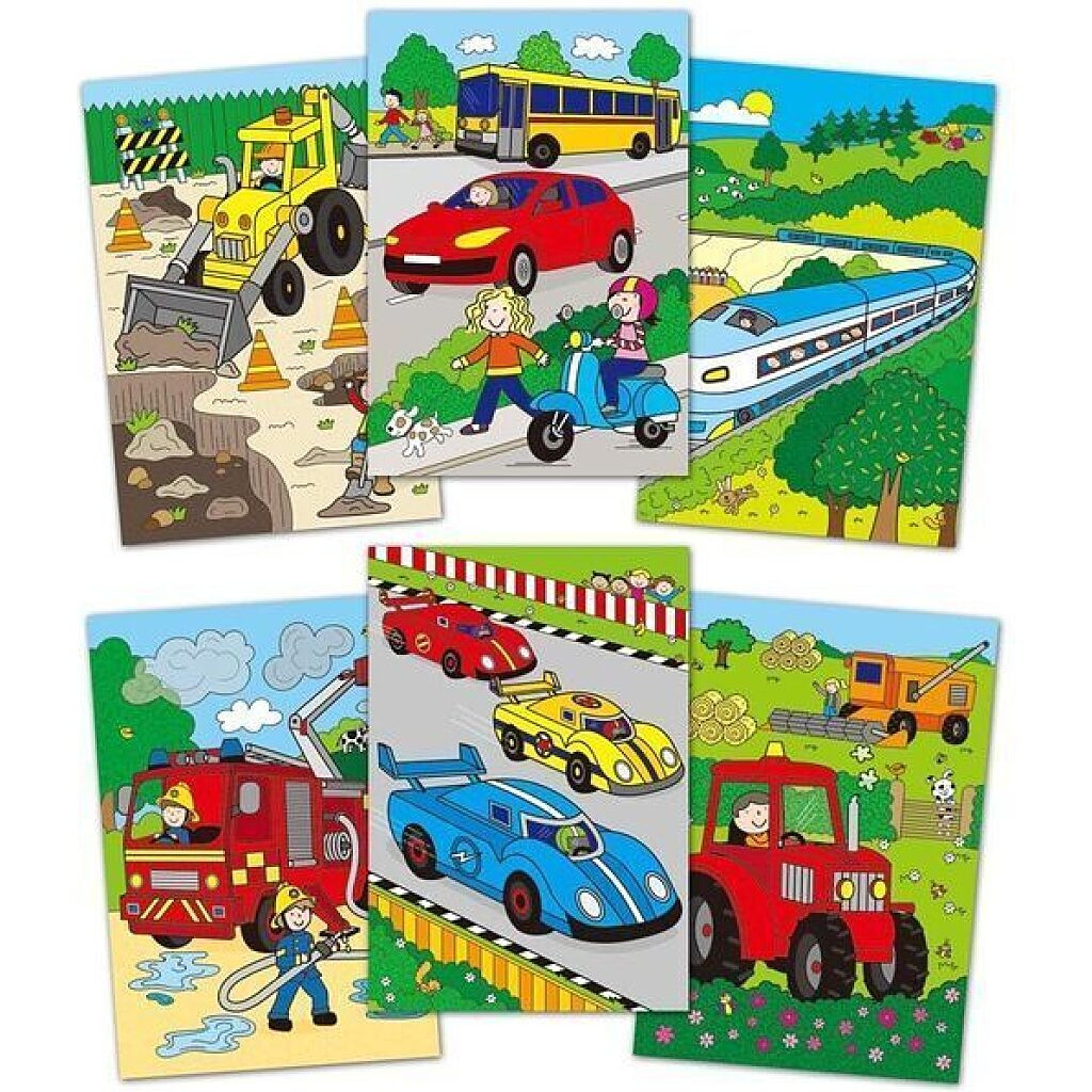 egy vastag lapokból álló kifestő, mely 6 újrafesthető járműves képet tartalmaz egy vízzel tölthető tollal. Töltsd meg a tollat vízzel és kezd el színezni a lapot, ennek hatására előbújnak az eddig rejtett képek és színek. Izgalmas szórakozást nyújt a gyermekek számára!