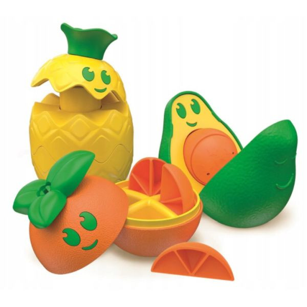 Az avokádó kinyílik, és megjelenik a magja, amely kivehető és visszahelyezhető. Az ananászt alkotó elemek egymásra rakhatók. A narancs 4 részre bomlik, amelyeket újra és újra össze lehet illeszteni.