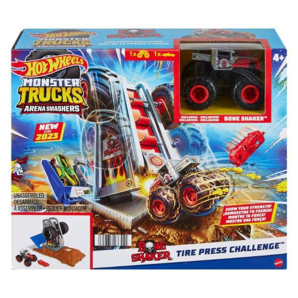 Szörnyen jól hasító járgányok az arénában? Igen! A Hot Wheels Monster Trucks Live aréna játékkészletekkel az ütközésekkel és zúzásokkal teli show garantált. Mindegyik készlet más elemeket és kihívásokat tartogat. Ebben a Live aréna Elődöntő pályaszettben a pálya mellett egy 1:64 méretarányú Bone Shaker kisautó és egy összezúzható kisautó áll a játszani vágyók rendelkezésére. A pálya izgalmas, mozgatható elemekből álló akcióterületének köszönhetően a gyerekeknek még több lehetőségük nyílik a földrengető zúzások végrehajtására. A játék strapabíró anyagokból készült, így a gyerekek sokáig élvezhetik majd a vele való játékot.