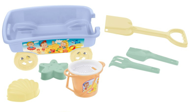 Húzós kocsi homokozójátékokkal - kék