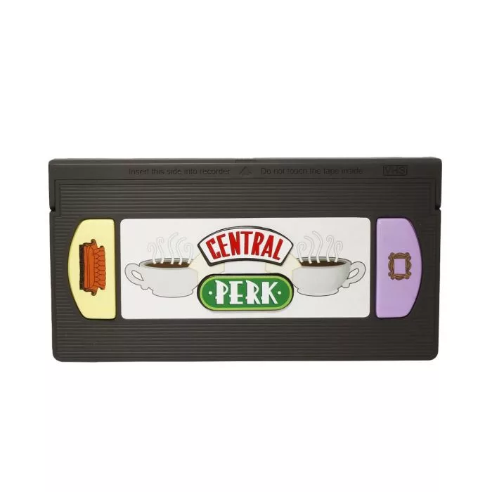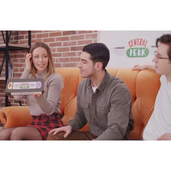 Jóbarátok családi társasjáték különleges, videokazetta formájú konzollal, amin a Central Perk kávézó logója szerepel. Ebben az interaktív kvíz társasjátékban most ti is kipróbálhatjátok tudásotokat a népszerű sorozattal kapcsolatosan. 500 kérdés vár megválaszolásra a játékosokra!