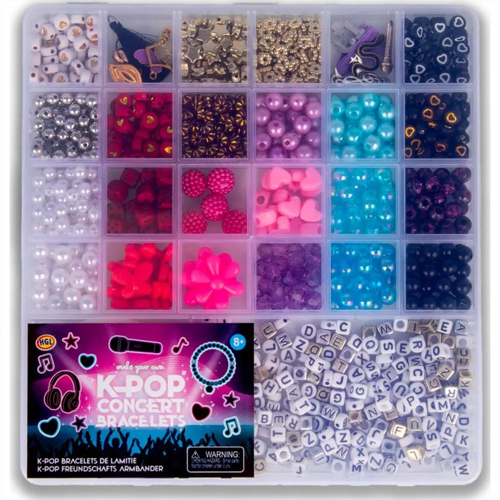Tökéletes választás minden K-pop rajongó és kreatív gyermek vagy tinédzser számára, akik színes gyöngyökből és tematikus medálokból szeretnének divatos, koncertre hangolt kiegészítőket készíteni.