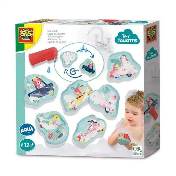 Minden kisgyermeket elvarázsol az esti pancsi alkalmával a SES Kádjátékok - Autómosó játékszett. Ha gyermeked kevésbé rajong az esti rutinért, akkor érdemes megpróbálni a kedves     habszivacs figurák segítségével vidám mókázássá varázsolni a fürdéseket. Akár már 1 éves kortól nagyszerű társai lehetnek a gyerkőcöknek a cuki kis autó figurák, akikkel öröm lesz minden együtt töltött pillanat.