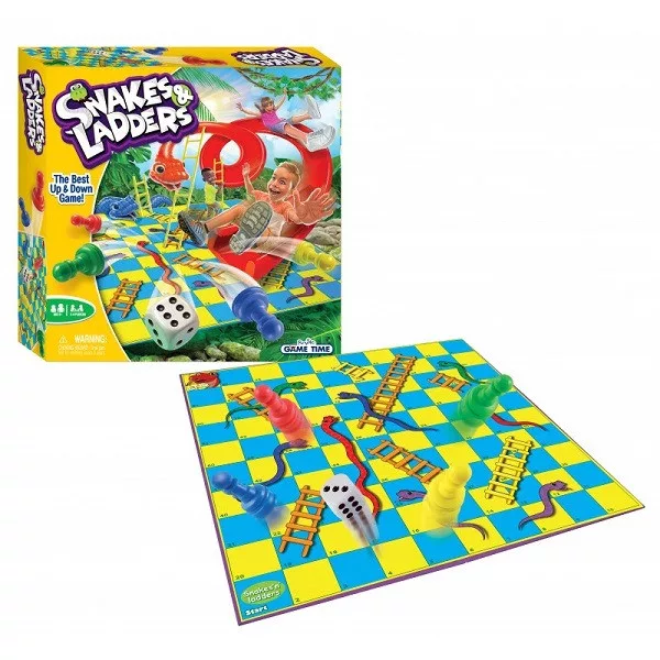 Egyszer lent, egyszer fent, klasszikus kígyókés létrák társasjáték. Helyezd el a rámpákat a lapon, juss feljebb a létrával, de vigyázz, mert a kígyóval könnyen a mélybe zuhanhatsz! A Kígyók és létrák társasjáték hordozható, könnyen összecsukható, így kis helyen is könnyen elfér.