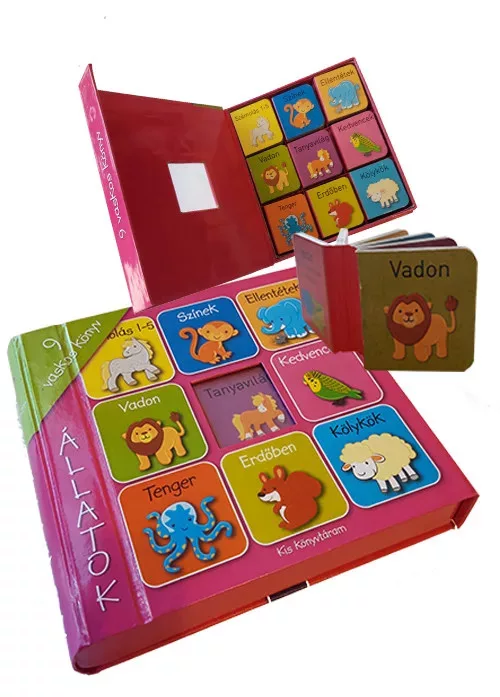 A csomag kilenc darab vaskos, strapabíró könyvecskét tartalmaz, amelyek tökéletesen illeszkednek a parányi gyermeki kezekbe. Ez a játékos formátum segít abban, hogy a könyv ne egy távoli, féltett tárgy legyen, hanem a mindennapi játék szerves része.