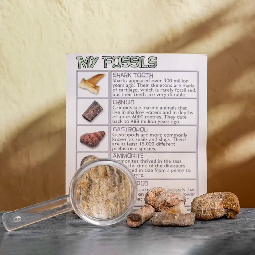 • Nagyító: A mellékelt nagyító segítségével közelebbről is megvizsgálhatod a kövületek részleteit.