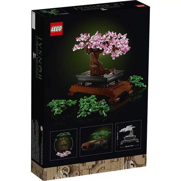 A bonsai művészete már évszázadok óta megragadja a fák szerelmeseinek képzeletét. Most pedig te is megünnepelheted ezt az ősi művészetet a LEGO® Bonsai fa modellépítő-készlettel. Élvezd a nyugalmat, miközben gondosan megformálod a bonsai fa modellt zöld levelekkel vagy rózsaszín, nyíló cseresznyevirágokkal. Ha felkészültél a változásra, a színes lombkoronát egy teljesen új kinézetre cserélheted. Nézd meg közelebbről a rózsaszín virágokat – látod az apró békákat, amelyek a nyíló virágokat alkotják? Gyönyörű kiállítható darab A LEGO Bonsai fa modellhez egy négyszögletes virágcserép és egy faléchatású LEGO állvány is tartozik, amelyek segítségével egy szép dísztárggyal ékesítheted az otthonodat vagy az irodát. Akár születésnapi ajándéknak szánod egy szerettednek, akár magadat leped meg vele, a készlet szépsége egész biztosan megragadja a képzelőerőt. A felnőtteknek szánt LEGO Botanikai gyűjteménybe tartozó készlet olyan levélelemeket tartalmaz, amelyek fenntartható forrásból származócukornád felhasználásával előállított, növényi alapú műanyagból készültek.