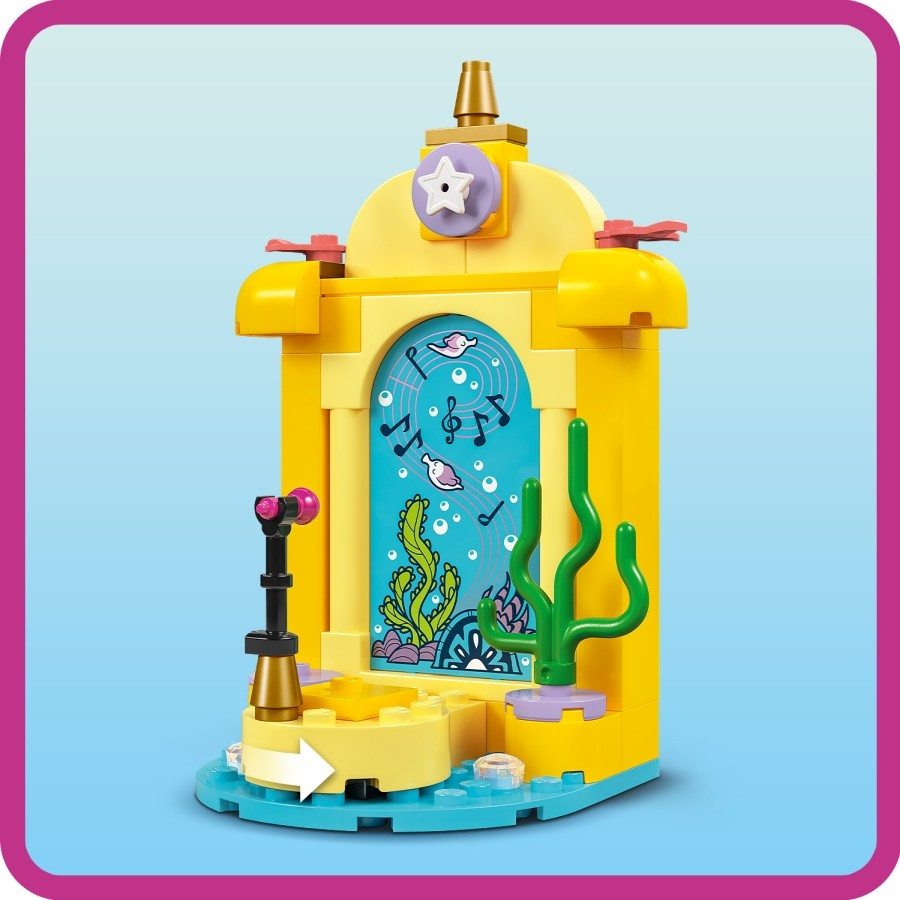 • Építőkészlet – Ez a megépíthetőszett tartalmaz egy színpadot, amelyet a Disney Junior TV Ariel című műsora inspirált, egy LEGO® Disney Ariel minibaba-figurát és egy LEGO Diseney Sebastian állatfigurát